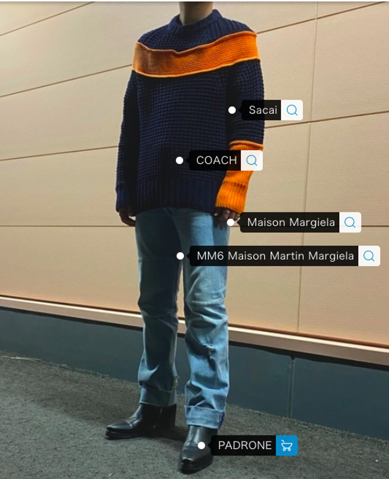 こちらのコーデには、ニットのセーターにSacaiが使われていますね。