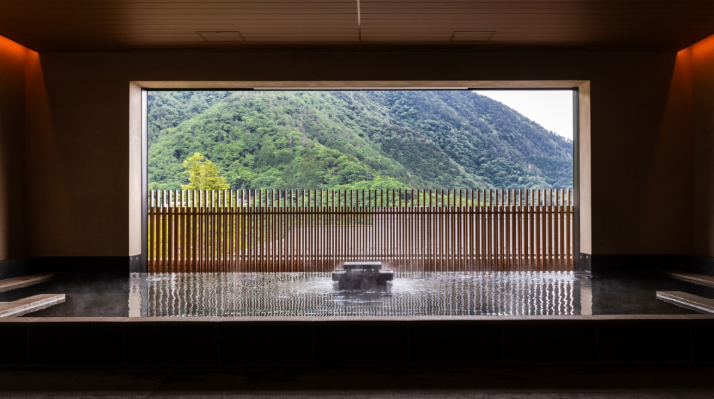 全室から箱根の四季折々の景色を楽しめる客室は、和を基調としながらも洗練された設えで、家族でゆったりと寛げる広さを確保。一部の客室には専用の露天風呂も備えられ、プライベートな温泉時間を楽しめます。大浴場や露天風呂では、肌に優しい弱アルカリ性の源泉かけ流し温泉に身を委ねることができます。