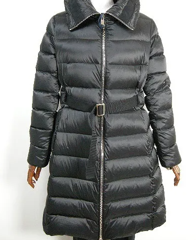 ベルテッドタイプのロングダウンは、女性らしいシルエットを追求したデザイン。ウエストのベルトによってスタイリッシュなシルエットを演出し、防寒性と美しさを両立させています。衿元の立体的なデザインや、裾のラインなど、全体のバランスは計算され尽くしています。表地には上質なナイロン素材を使用し、光沢感と耐久性を兼ね備えています。また、ベルトの着脱やウエストの絞り具合によって、様々な表情を楽しむことができるのも特徴です。内部の中綿の配置にも工夫が施され、暖かさを保ちながらもすっきりとしたシルエットを実現しています。